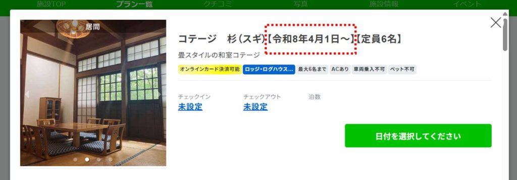 4月以降の予約をする場合は、【令和8年4月1日~】と記載があるプランをご選択ください。
