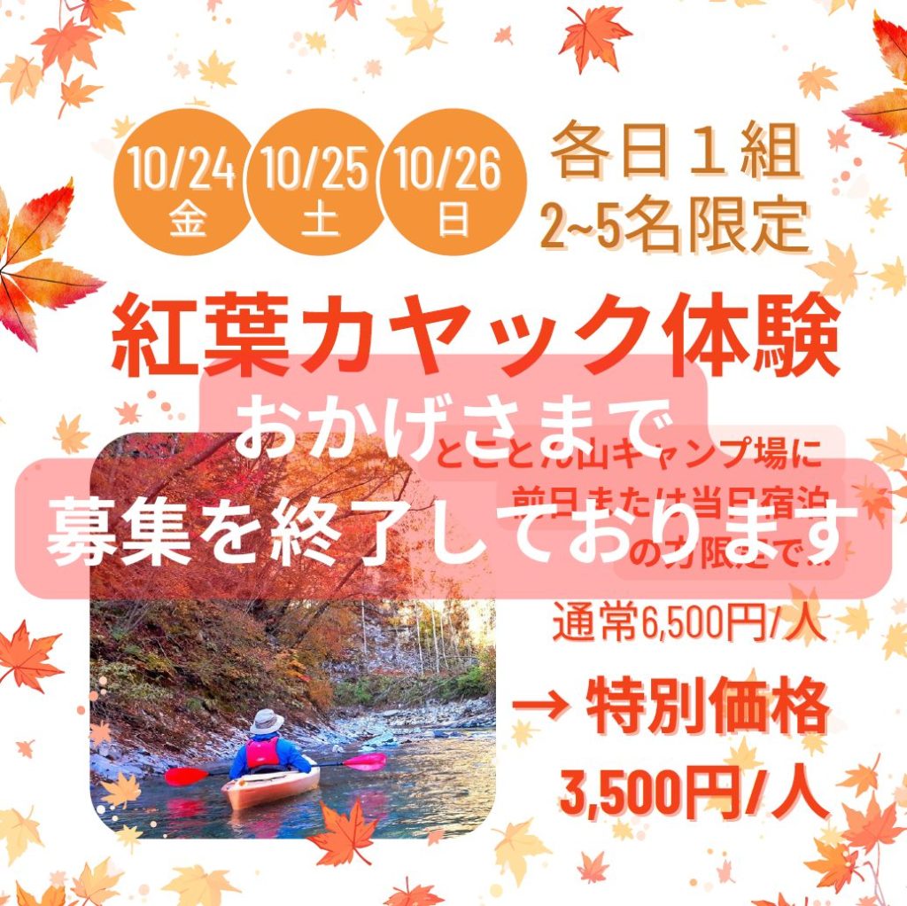 【3組限定】紅葉を楽しむカヤック体験会(キャンプ場利用者割引あり!)